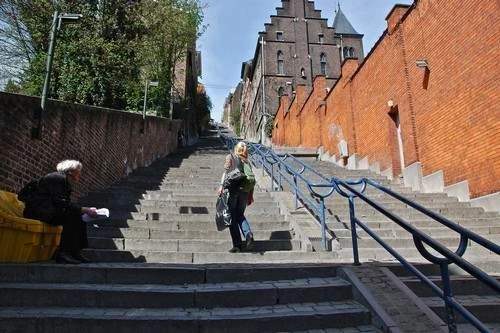La Montagne de Bueren ou la Montagne de Bueren à Liège, en Belgique, n’est pas une vraie montagne. C’est un escalier de 374 marches. Il mène à la Citadelle célèbre mais en grande partie détruite depuis le Hors-Chateau. Il a été construit en 1881 pour aider les soldats à descendre du haut de la colline jusqu’au centre de la ville en toute sécurité. Du haut de l’escalier, sur une excellente vue sur la ville et le Meus.