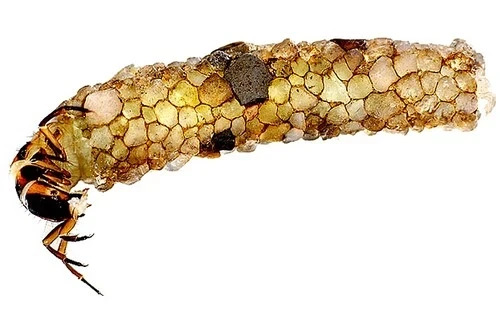 Le Caddisfly est un architecte sous-marin unique en son genre. À l’état de larve, les phryganes immatures travaillent pendant dans les ruisseaux, les étangs et autres plans d’eau douce qu’ils habitent, et se réduisent de morceaux de sable, de plantes ou de tout ce qu’ils contiennent, pour construire un éventail de caisses et de retraites. Il sécrète une soie collante à partir de ses glandes salivaires modifiées, qu’il utilise pour tisser ensemble des cailloux, du sable et d’autres détritus. La larve se développe dans la maison de fortune ornée et unique, dans un environnement protégé qui offre un camouflage et une stabilité dans les courants, et assure également l’efficacité de l’alimentation et de la respiration. Certains construisent des chambres en forme de filet devant la retraite, étendent des labyrinthes de soie,