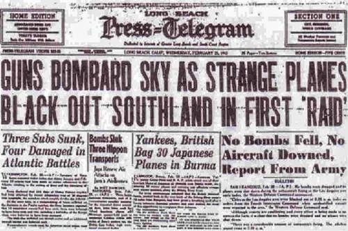 Initialement, on désigné que la cible était une force d’attaque du Japon. Mais s’accusant lors d’une conférence de presse peu de temps après, le secrétaire à la Marine Frank Knox a qualifié l’incident de “fausse alerte”. Certains ufologues modernes ont proposé que les cibles étaient des engins spatiaux extraterrestres. Lors de la documentation de l’incident en 1983, l’US Office of Air Force History a caractérisé l’événement à un cas de “nerfs de guerre” probablement provoqué par un ballon météo perdu et exacerbé par des fusées éclairantes et des éclats d ‘obus provenant de batteries adjacentes….