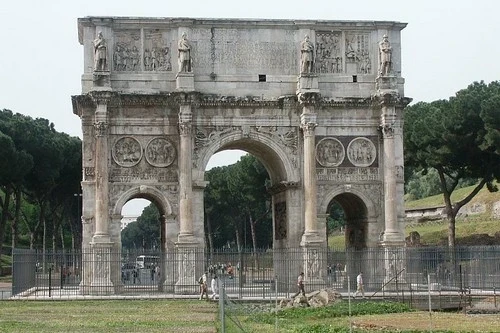 L’Arc de Constantin se situe entre le mont Palatin et le Colisée à Rome. C’est un magnifique arc de triomphe, intégré pour commémorer la victoire de Constantin Ier sur Maxence à la bataille du pont Milvius en 312. L’arc est en marbre, avec des complexes de reliefs du IIe siècle sur la pierre. Cet étonnant monument en arc est le dernier parmi les arcs de triomphe qui existent encore à Rome.