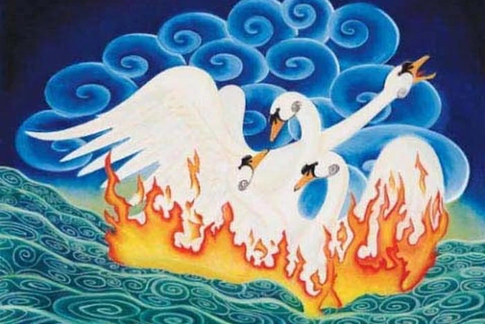 Cette histoire découle du cycle mythologique de l’Irlande. Lir était le seigneur de la mer et avait une femme et quatre enfants. À la mort de sa femme, il épouse Aoife, la sœur de sa femme. Aoife n’aimait pas les enfants de lire et voulait s’en débarrasser. Un jour, elle a emporté les enfants dans un lac, et pendant qu’ils nageaient, elle leur a jeté un sort qui les a transformés en cygnes. Selon le sortilège, les enfants doivent rester ainsi jusqu’à ce qu’ils entendent une cloche chrétienne. Les cygnes ont continué à nager pendant des années d’une rivière à un lac en attendant d’entendre une cloche, mais c’est après 900 ans que Saint Patrick a atteint l’Irlande et a libéré ces enfants de la malédiction.